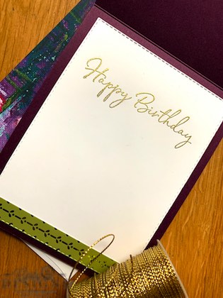 2. Stitched panel: Pretty Peacock Foil Sheets in Old Olive die-cut with largest Stitched Rectangle die-cut.