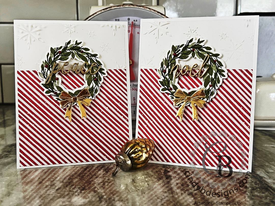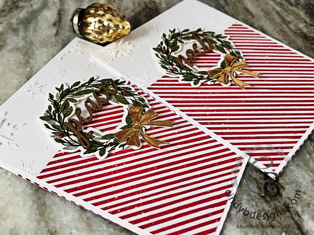 The wreaths were cut from their coordinating die and I also cut 2 large bows from a Gold Foil Sheet.