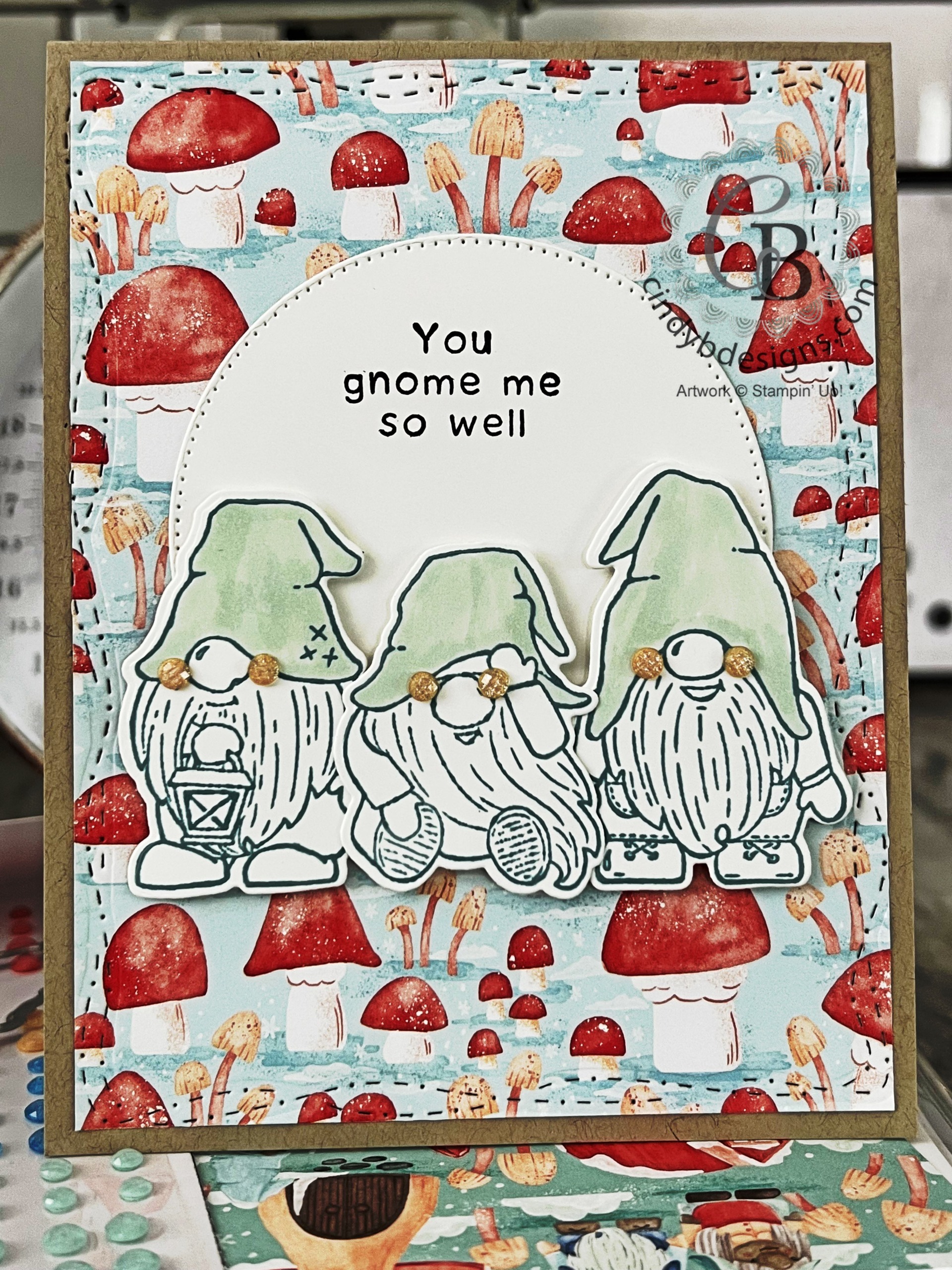 This suite is not just for Christmas. Today’s project is a friendship card. Gnomes are popular everywhere and this suite collection covers all seasons.