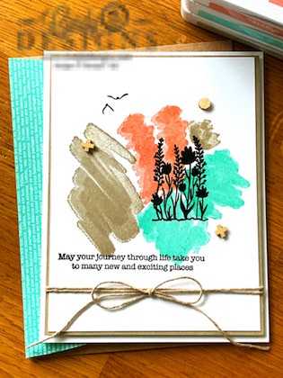 The floral image and sentiment stamped in Memento Tuxedo Black are from the March 2021 Paper Pumpkin, Here’s to You. The flying bird image in the top left is also from Here’s to You.