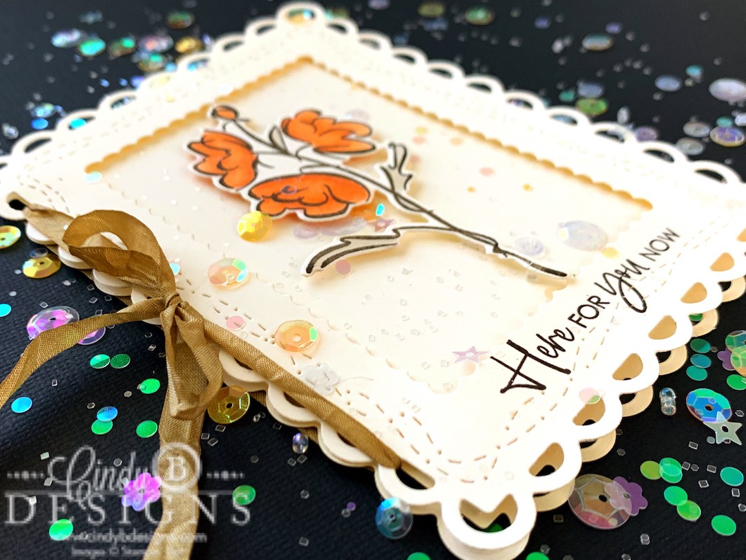I added Seal to the BACK of the card base and adhered to the scallop frame.