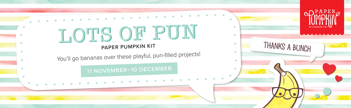 The Lots of Pun Paper Pumpkin Kit includes enough egg-citing elements to create nine cards and coordinating envelopes. From giddy gingham to splatters and stripes, this playful Paper Pumpkin kit features a fun and fresh look with one-of-a-kind patterns and designs! Egg-cellent for any occasion, reason, or season throughout the year, the kit’s pun-packed stamp set provides completely customizable characters for a very versatile crafting experience. Pair each stamp with its matching die-cut snack, then mix up the faces and accessories for an absolutely adorable accent!