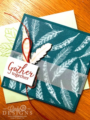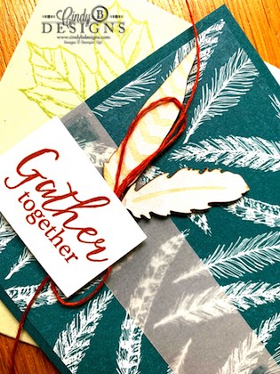 This was such a simple card to make and perfect for a quick invitation. The elements of vellum, twine, and embossed wood pieces + dimension really make this monochromatic card stand out. The Come To Gather Suite is a wonderful fall and Thanksgiving bundle to have this season.