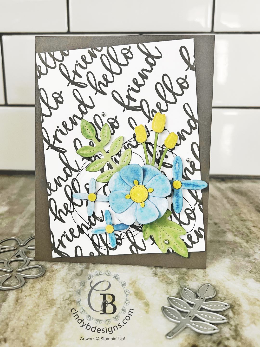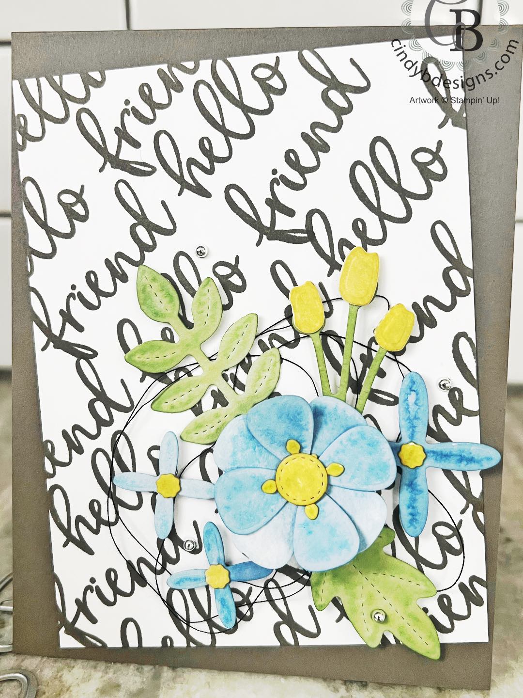 For final assembly, I adhered the large flower to the image panel with a Stampin’ Dimensional and adhered the rest of the flowers with Stampin’ Dimensionals.