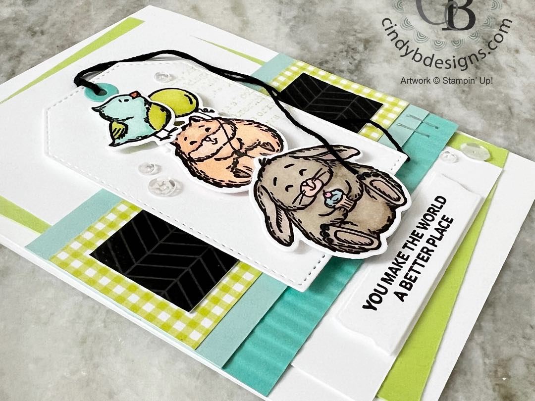 The animal images were adhered to the tag with Stampin’ Dimensionals.