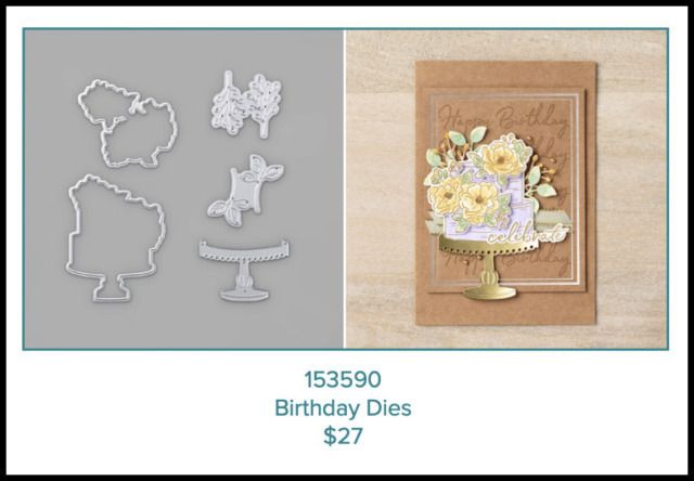- Birthday Dies (item 153590), which is available on February 4, 2020, and is part of a 2nd release product coordination as a separate product purchase at $27.