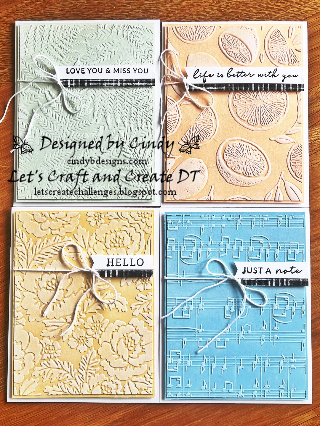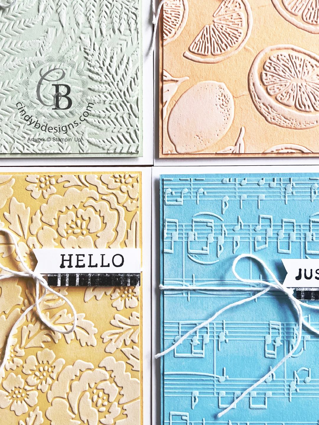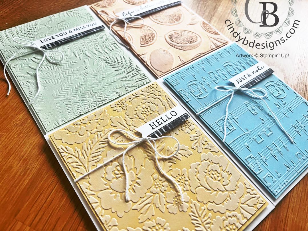 All of the cards were created exactly the same. I just used different embossing folders and colors. This would look amazing with any of our colors.