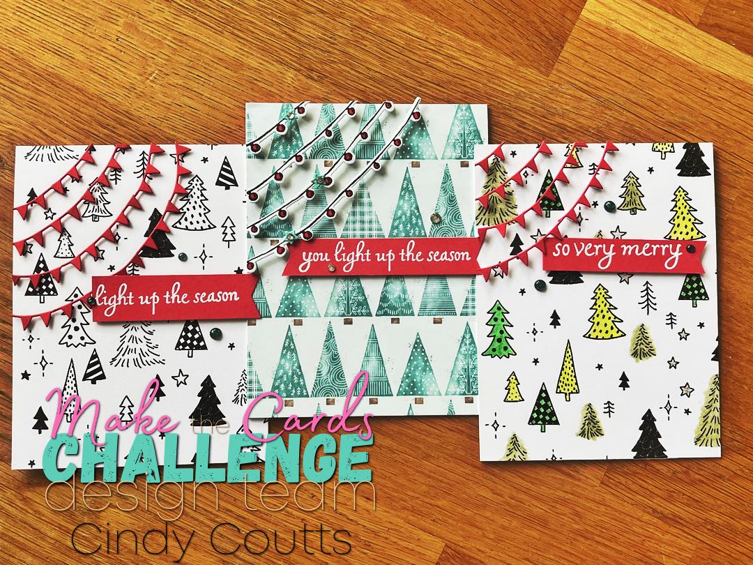 Hello there! Thank you for joining me today for a card trio featuring Trees For Sale and Tree Lot Dies for Make the Cards Challenge #59 sketch challenge.