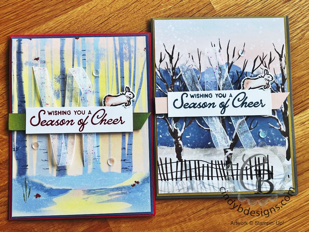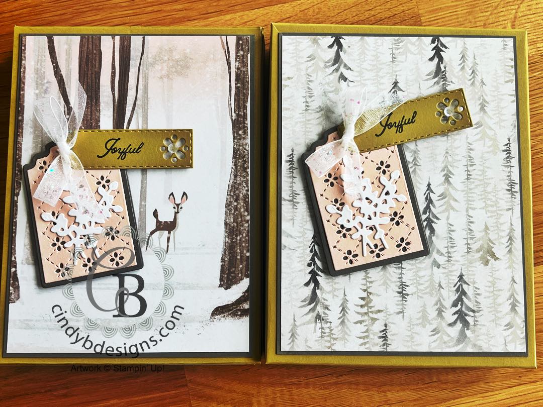 This is not as wintery Christmas as you think. I can see the bunny and both tree images used on other occasions + the fantastic die-cuts. The coordinating designer series paper features daring color combinations and snowflake embellishments.