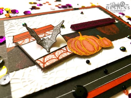 - Image panel: 4-1/4 x 3, Regular Whisper White, embossed with the Cobwebs folder.