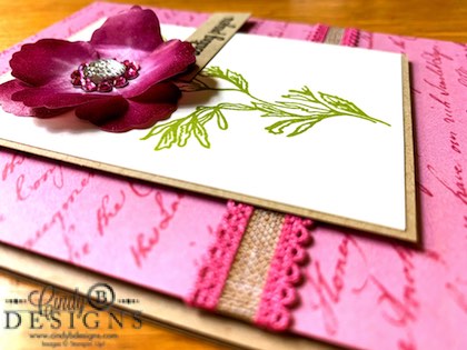 - Rococo Rose/Merry Merlot DSP Script panel: Adhere to same size CS of 4 x 5-1/4, as DSP is 65 lb weight.