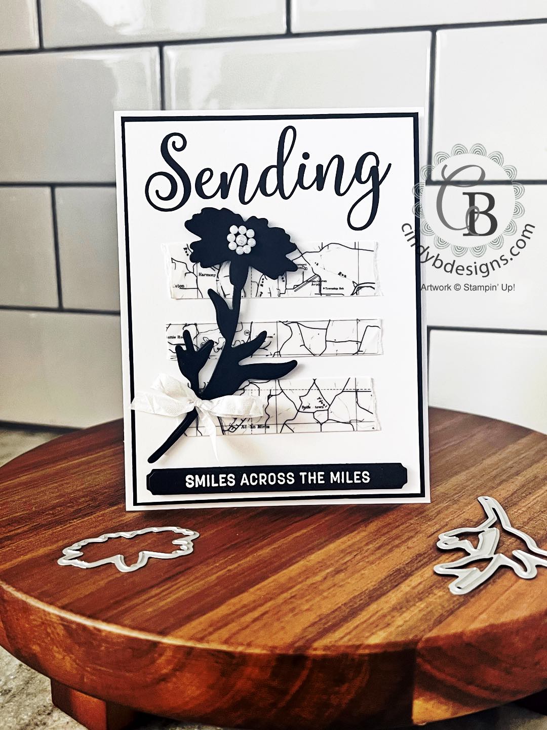 I cut a stem and flower out of Basic Black CS from Sending Dies and adhered the flower atop the stem with a few Mini Glue Dots.