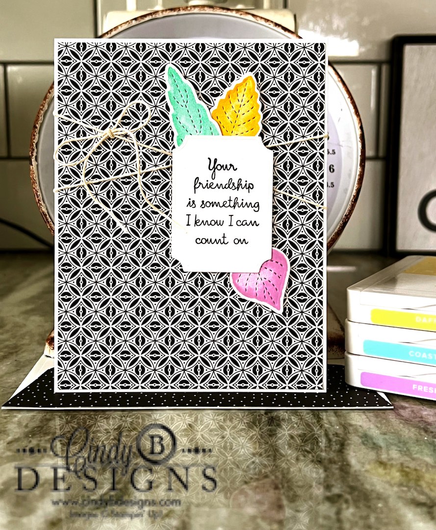 The Stitched Leaves Dies added the line dot detail to the leaves. Additionally, I mixed my neutrals of Basic White CS and Very Vanilla Twine, adding even more detailed interest to the card. This took me maybe 10-15 minutes to complete and would be a great class, club or retreat card. Change the sentiment for even more creative opportunities.