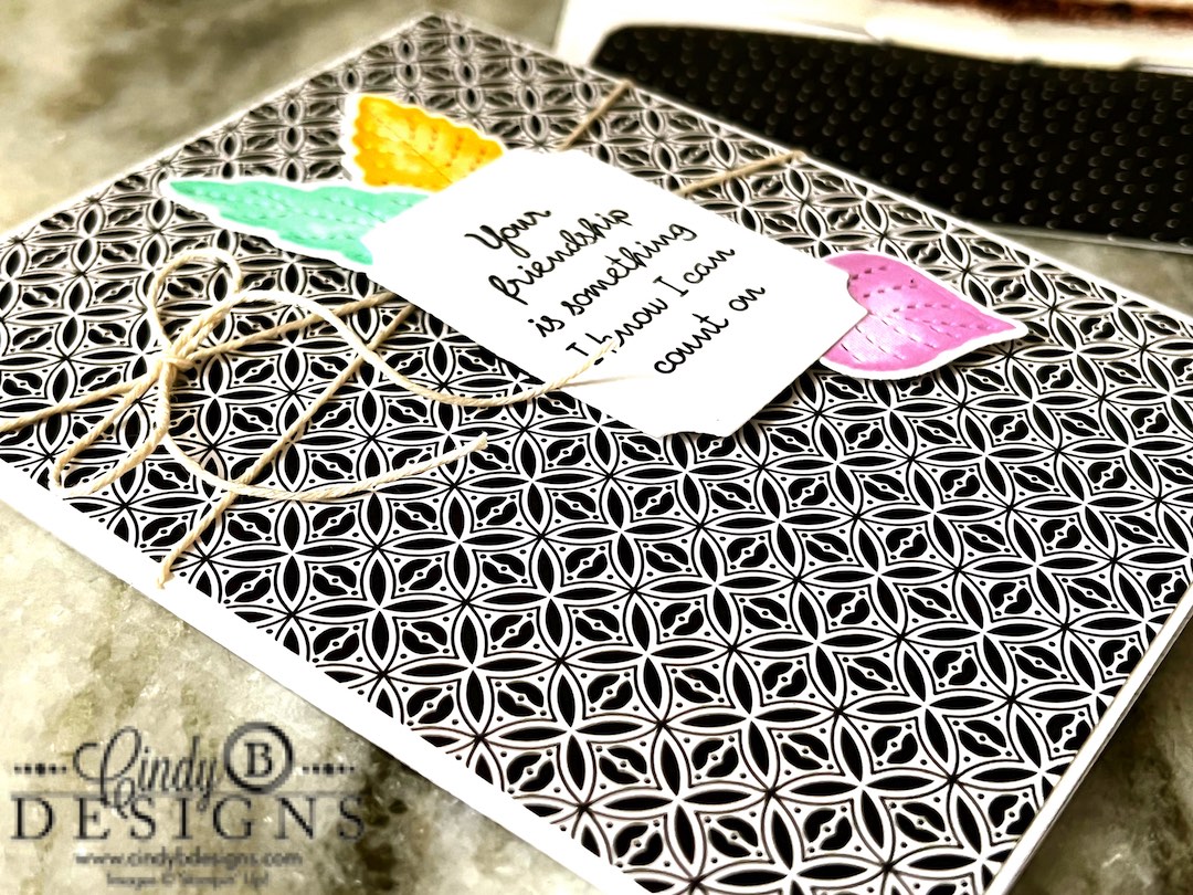 I die-cut the images out and impressed the inside at the same time with the line dot detail. The way these dies are designed, you can do that with one pass through the Stampin’ Cut & Emboss Machine.