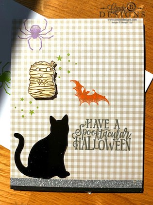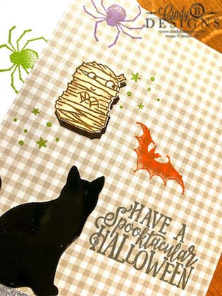 The sentiment from Spooktacular Bash was stamped in Basic Gray. The Pumpkin Pie bat and Highland Heather spider are from Wonderfully Wicked. The cat was punched from a Black Foil Sheet. This is just the easiest and fun card to make with the colors. I have a lot of little (and big) cousins and hope to make Halloween special for them this year, so you will definitely be seeing some upcoming kid projects and a few adult ones too.