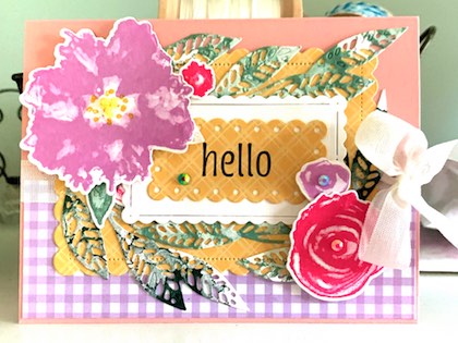 - Mat 1: 5-3/8 x 2-1/8, Fresh Freesia gingham pattern print, Pansy Petals DSP.