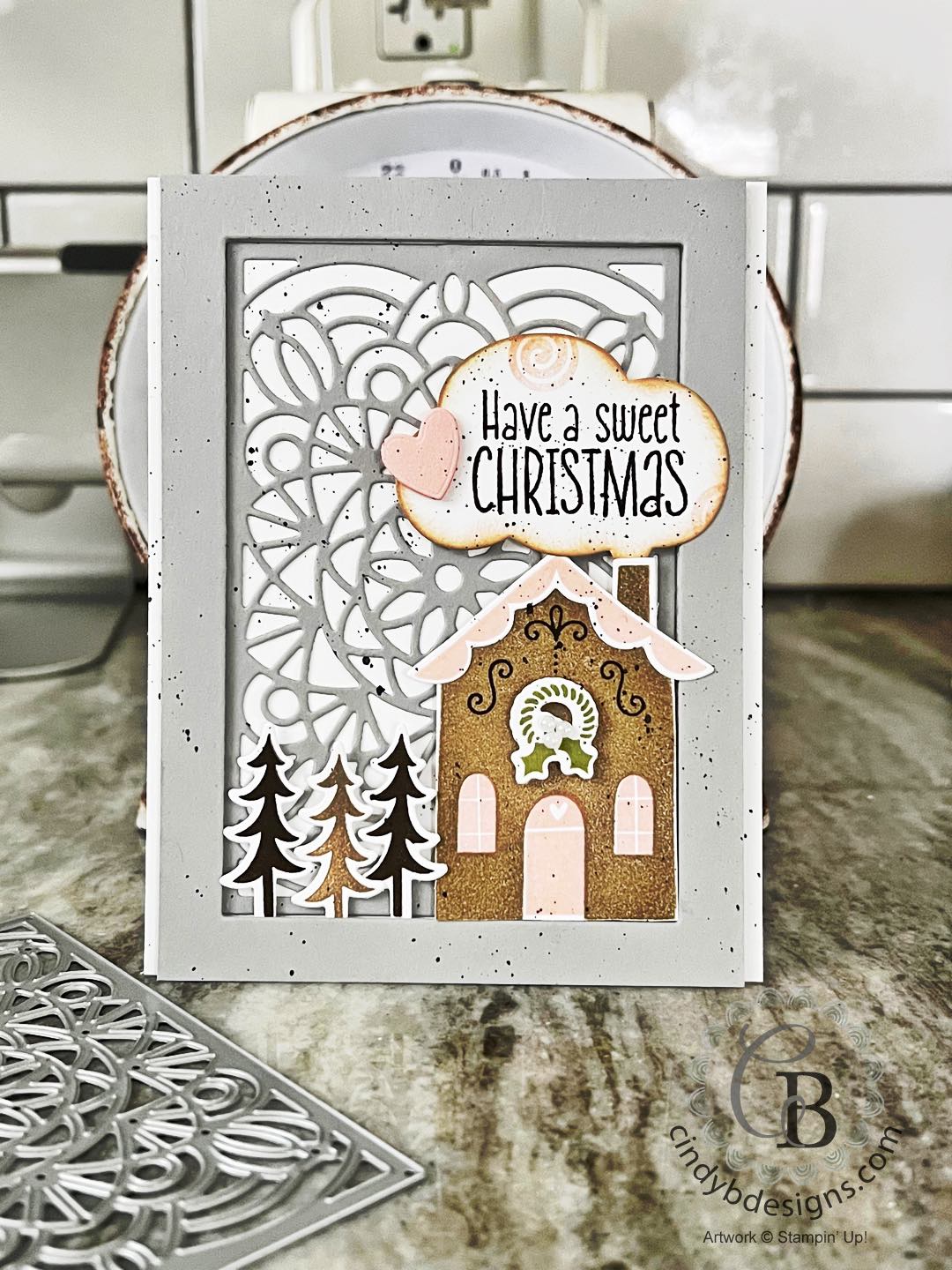 I went about stamping and die-cutting the rest of the elements for this card from the Sweet Gingerbread Bundle described below.
