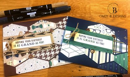 Hello there! Today I have a short video for you on how I made these easy masculine birthday cards from pages 44-45 of the Occasions Catalog with a Cindy twist.