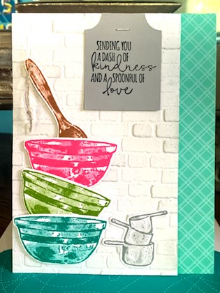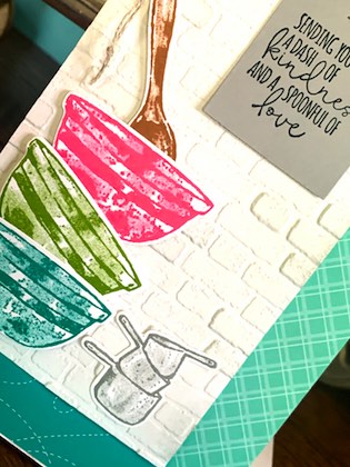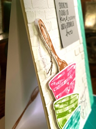 The measuring cups were adhered with Multipurpose Liquid Adhesive. The bowls and spoon were adhered with Stampin’ Dimensionals.